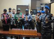 Tampak anggota Pol Air melakukan pemeriksaan barang-barang penumpang yang masuk.