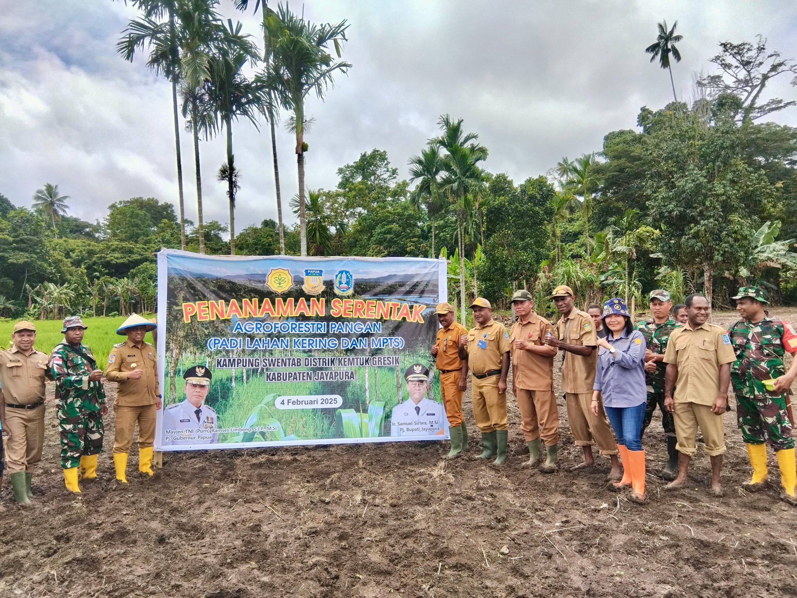 Jayapura,fajarpapua.com – Mendukung swasembada pangan serentak, Pemerintah Kabupaten (Pemkab) Jayapura melaksanakan penanaman perdana padi gogo di lahan perkebunan, di Kampung Swentab, Distrik Kemtuk Gresi, Kabupaten Jayapura, Papua. Penanaman perdana padi gogo yang langsung dilakukan oleh Penjabat (Pj) Bupati Jayapura, Dr. Ir. Semuel Siriwa, M.Si., Selasa, 04/02/2025.