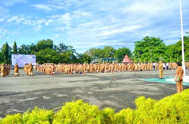 jayapura,fajarpapua.com – Rutinitas Aparatur Sipil Negara (ASN) di lingkungan Pemerintah Kabupaten Jayapura setiap hari Senin pagi adalah melakukan apel di Lapangan Apel Kantor Bupati Jayapura Gunung Merah Sentani.
