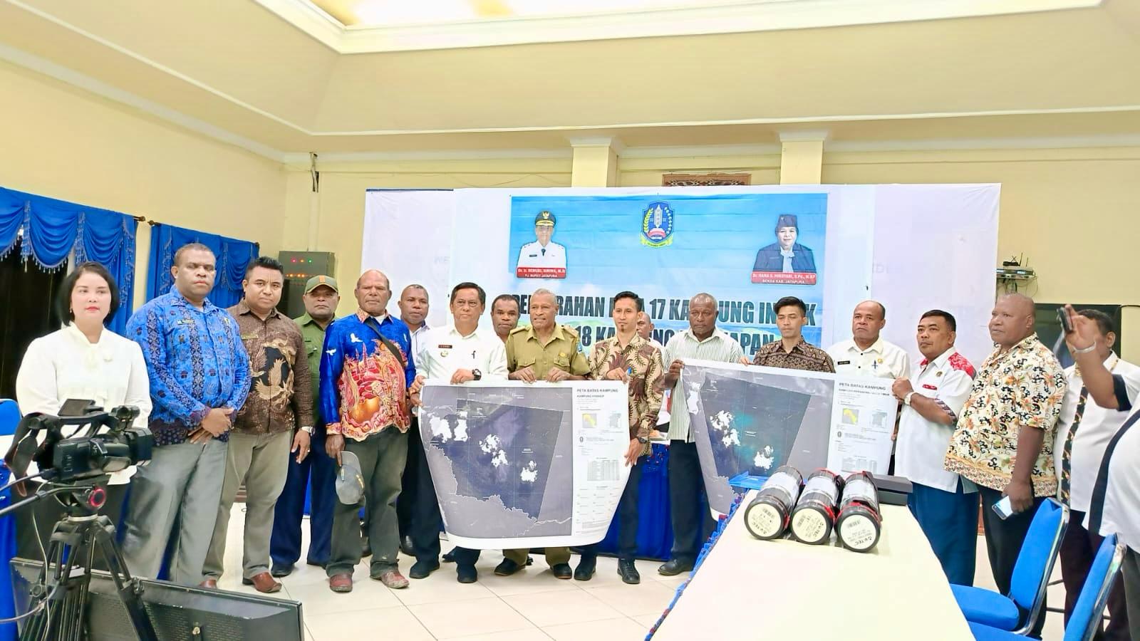 Pada kesempatan ini ada 17 kampung induk dan 18 kampung persiapan menerima dokumen peta dari PT. GEOLAND MAPPING TECHNOLOGY. Adanya peta tersebut diharapkan dapat membantu dalam perencanaan dan pengelolaan wilayah kampung agar lebih terstruktur dan tidak ada lagi perdebatan soal batas wilayah.