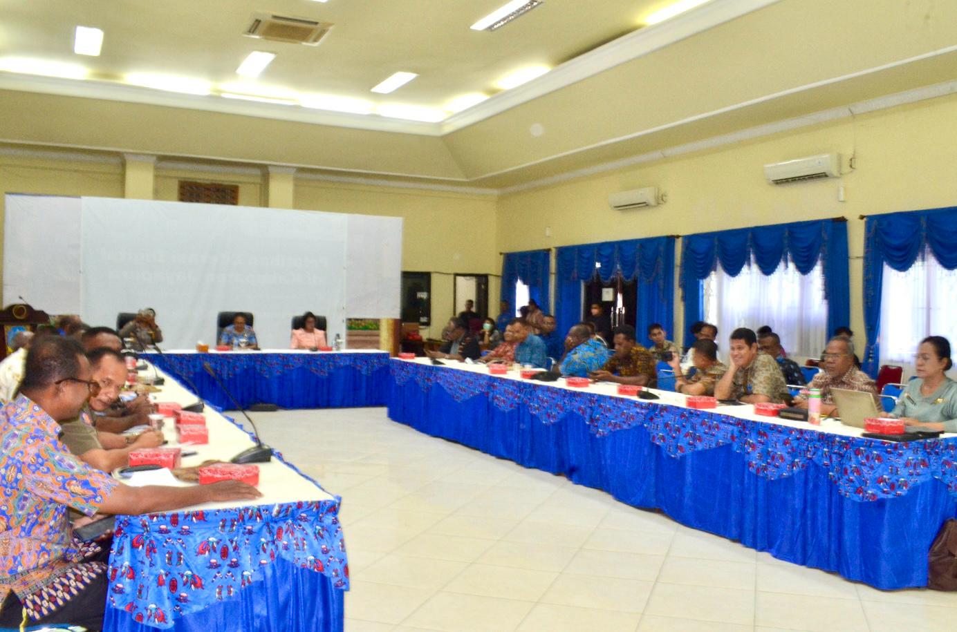 Rapat tersebut dihadiri oleh seluruh Kepala Organisasi Perangkat Daerah (OPD) dan di pimpin oleh Sekretaris Daerah (Sekda) Kabupaten Jayapura, Dr. Hana S. Hikoyabi, S.Pd., M.KP dengan didamping oleh Asisten I Setda Kabupaten Jayapura dan Kabag Ops Polres Jayapura.
