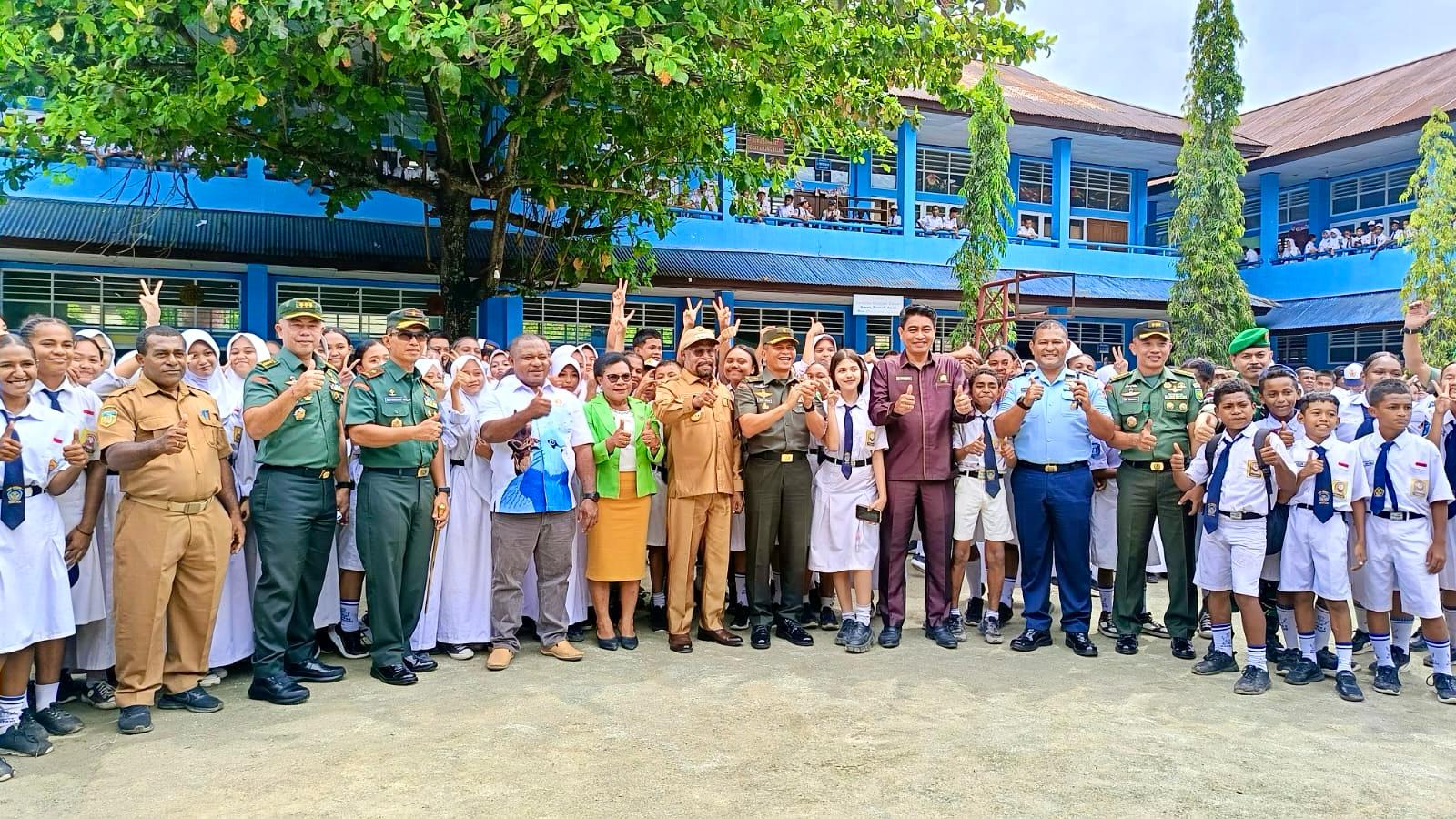Program MBG ini langsung dipimpin oleh Kasdam XVII/Cenderawasih Brigjen TNI Thevi Zebua, dan juga dihadiri boleh Bupati Jayapura Yunus Wonda, Ketua DPK Kabupaten Jayapura, pihak yayasan dan Kepala Sekolah SMP N 1 Sentani, serta pihak-pihak terkait lainnya.