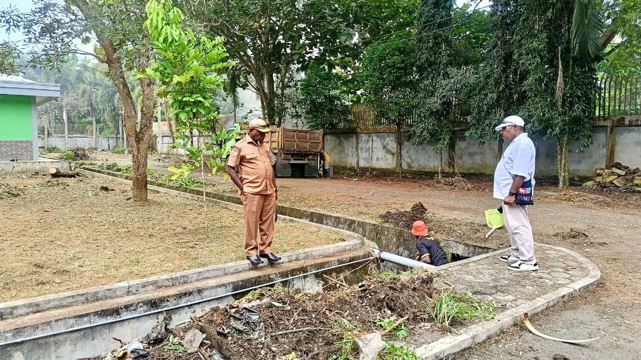 Jayapura, fajarpapua.com – Resmi menjabat Plt. Kepala Dinas Kesehatan Kabupaten Jayapura, dr. Anton Tony Mote langsung membersikan lingkungan Kantor Dinas Kesehatan Kabupaten Jayapura dari jalan masuk hingga halaman kantor kesehatan dengan membersihkan sampah-sampah yang menumpuk dan ranting-ranting pohon, kata dr. Mote saat diwawancara usai melihat proses pembersihan lingkungan kantor, Senin, 28/04/2025.