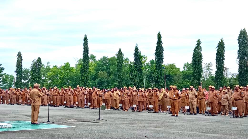 Jayapura. fajarpapua.com Pemerintah Kabupaten Jayapura gelar apel pagi yang dipimpin Bupati Jayapura, Dr. Yunus Wonda, S.H., M.H., di Lapangan Gunung Merah Sentani, Senin, 28/4/2025.