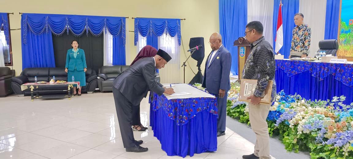 Jayapura, fajarpapua.com – “Bekerjalah sesuai dengan Visi Misi Pemerintah Kabupaten Jayapura”, merupakan sebuah kalimat penegasan yang disampaikan Bupati Jayapura, Dr. Yunus Wonda, S.H., M.H., dalam sambutannya usai melantik dan mengambil sumpah/janji jabatan 63 pejabat eselon III dan IV, berlangsung di Aula Lt. II Kantor Bupati Jayapura, Kamis, 24/07/ 2025.
