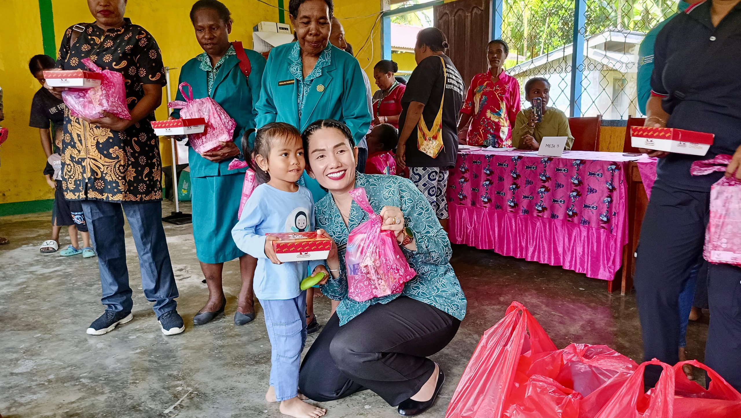 Kunjungan ini dalam rangka pembinaan Posyandu sekaligus penyerahan bantuan program intervensi bagi anak-anak penderita stunting dan gizi buruk di 12 Kampung di Distrik Kemtuk.