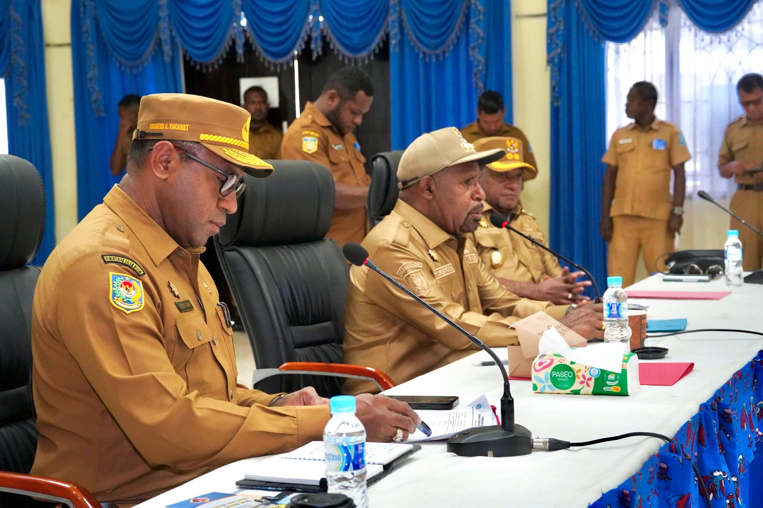 Rapat dipimpin Bupati Jayapura, Dr. Yunus Wonda, S.H., M.H., didampingi Wakil Bupati Jayapura Haris Ricard Yocku, S.H serta Asisten I Bidang Pemerintahan Setda Kabupaten Jayapura, Gilberd Raffles Yakwart, S.STP., M.KP., yang diikuti oleh para lurah dan kepala kampung se-Kabupaten Jayapura.