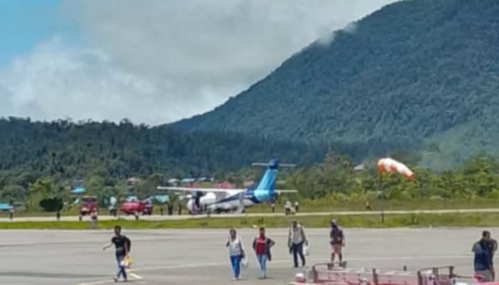 Pesawat ATR 42-300 Trigana Air Pecah Ban Depan di Bandara Oksibil, Seluruh Penumpang Selamat