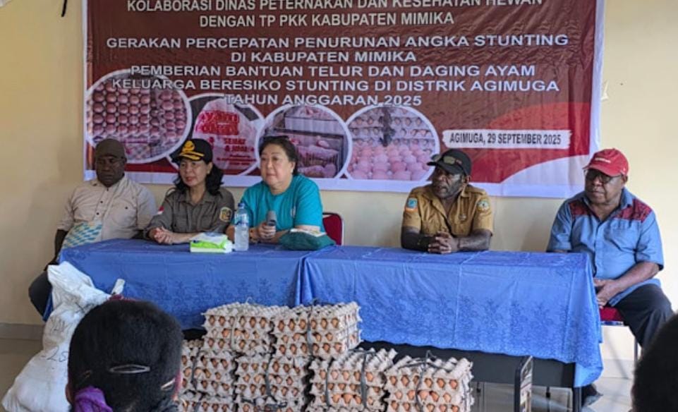 “Setiap KK menerima tiga rak telur dan tiga ekor ayam. Bantuan ini bertujuan menambah gizi anak-anak, terutama balita dan ibu hamil, agar kelak mereka tumbuh menjadi generasi emas Mimika,” ungkap Kepala Disnakeswan, Sabelina Fitriani.