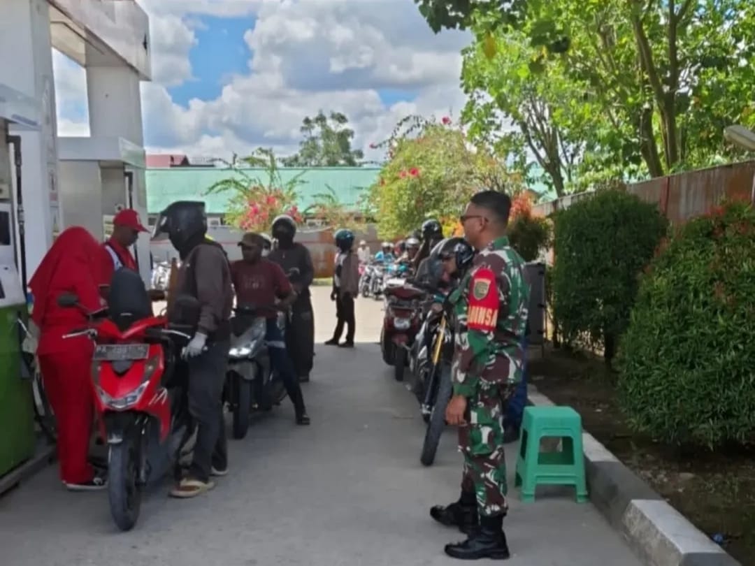 Personel kepolisian diturunkan untuk mengawal proses pengisian di SPBU dan memastikan penyaluran berjalan tertib.