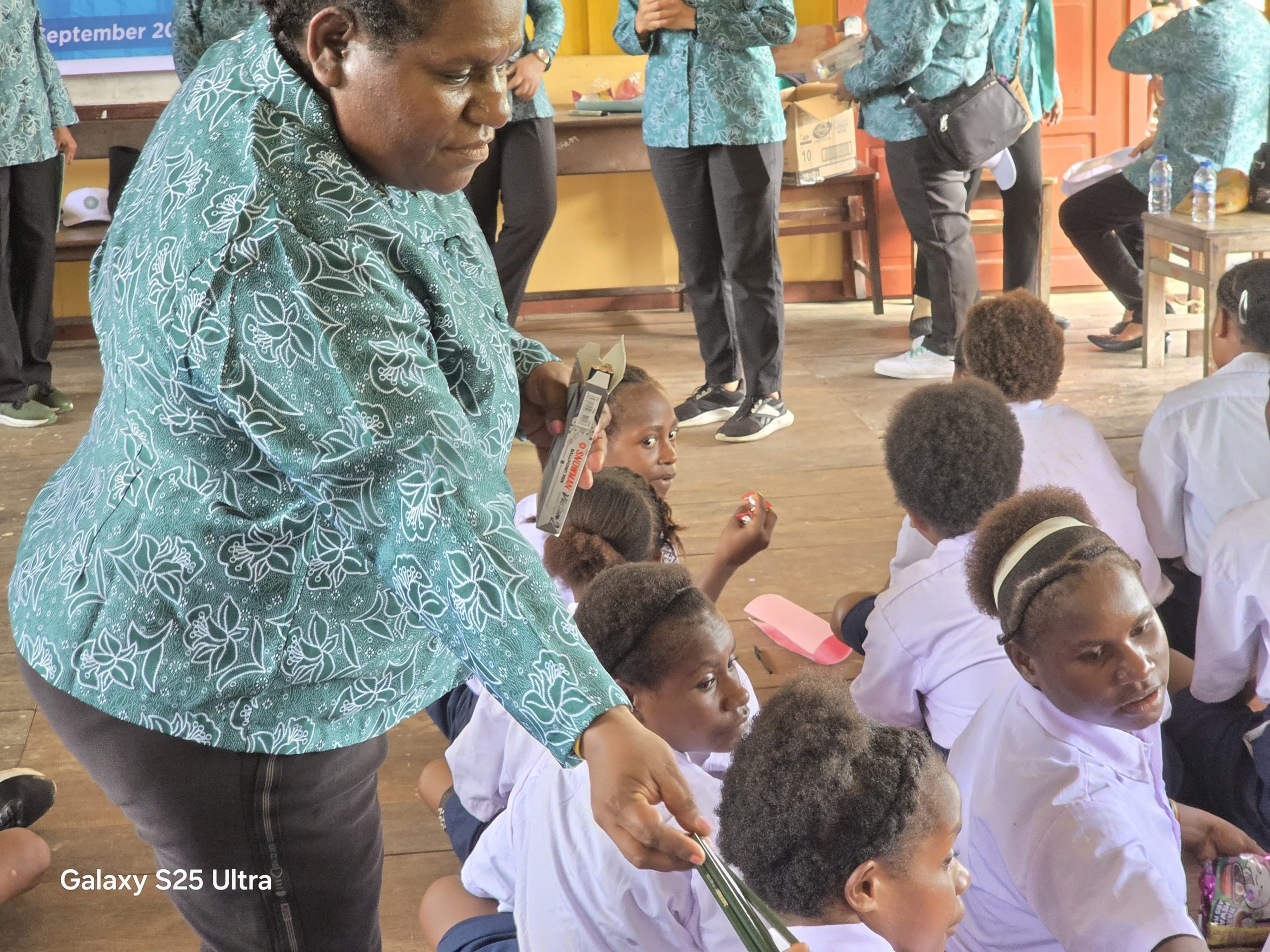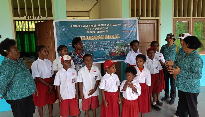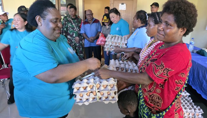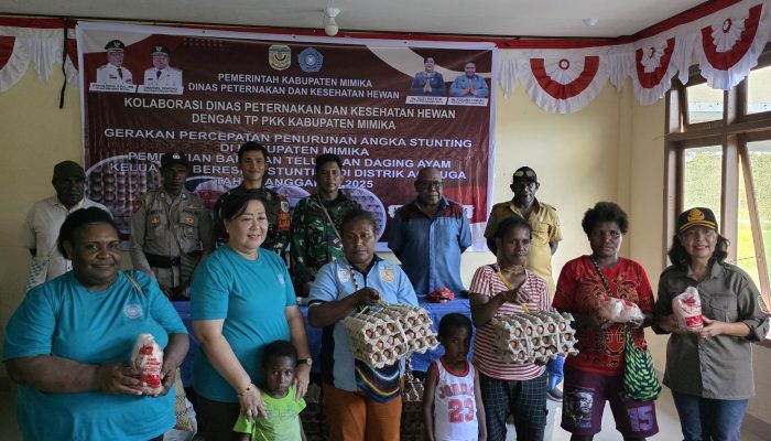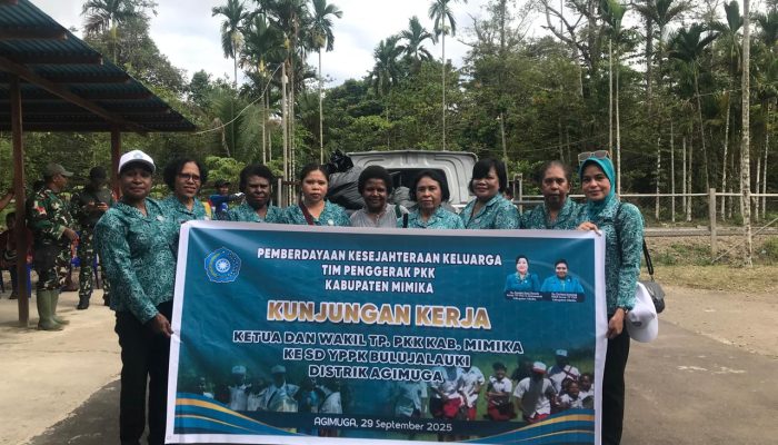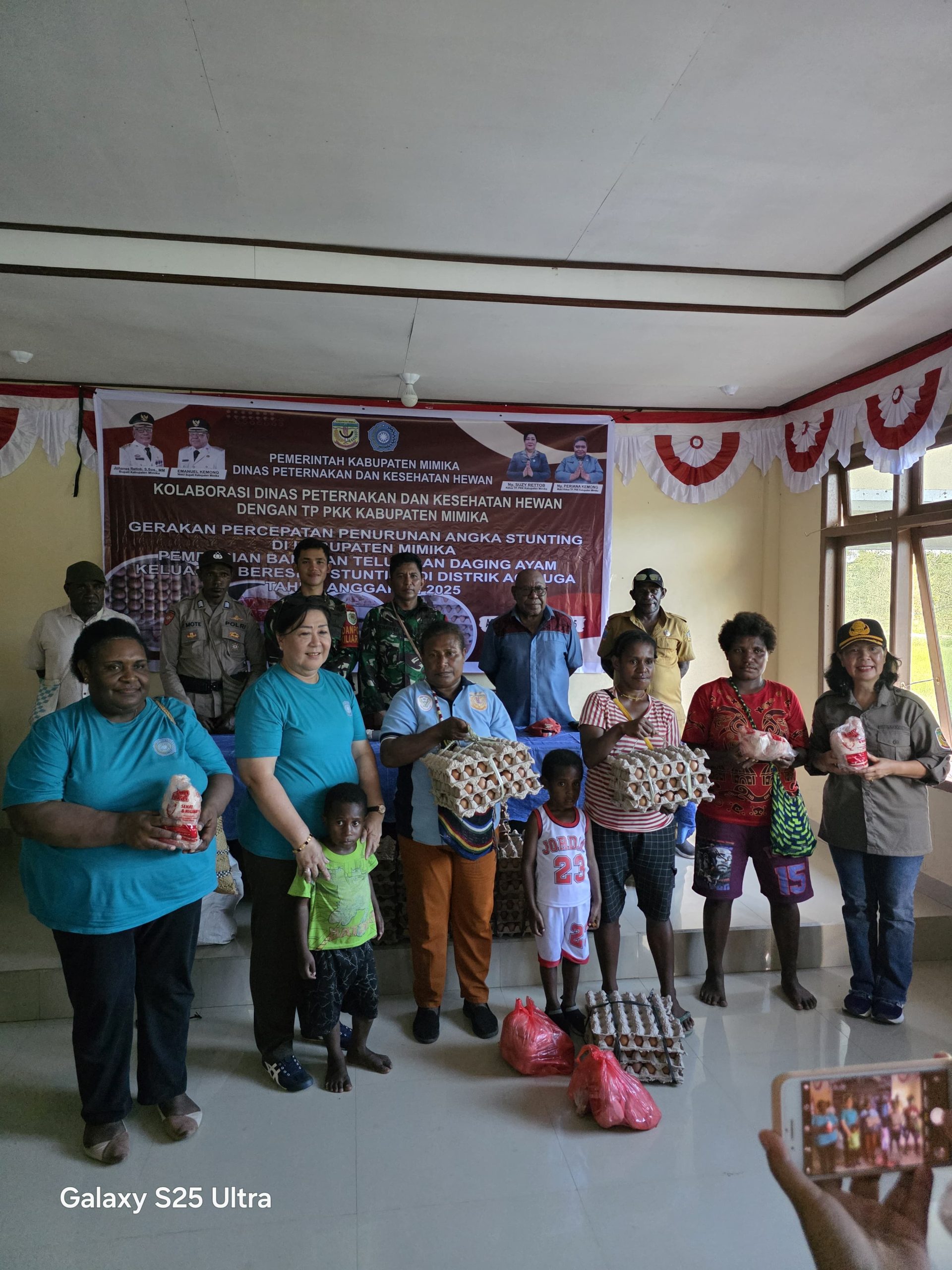 Tim Penggerak Pemberdayaan dan Kesejahteraan Keluarga (TP PKK) Kabupaten Mimika berkolaborasi dengan Dinas Perternakan dan Kesehatan Hewan (Disnakeswan) serta Dinas Ketahanan Pangan (DKP) membantu warga Agimuga dalam kunjungan kerja (kunker) ke delapan kampung di wilayah itu, Senin (29/9/2025) dan Selasa (30/9/2025