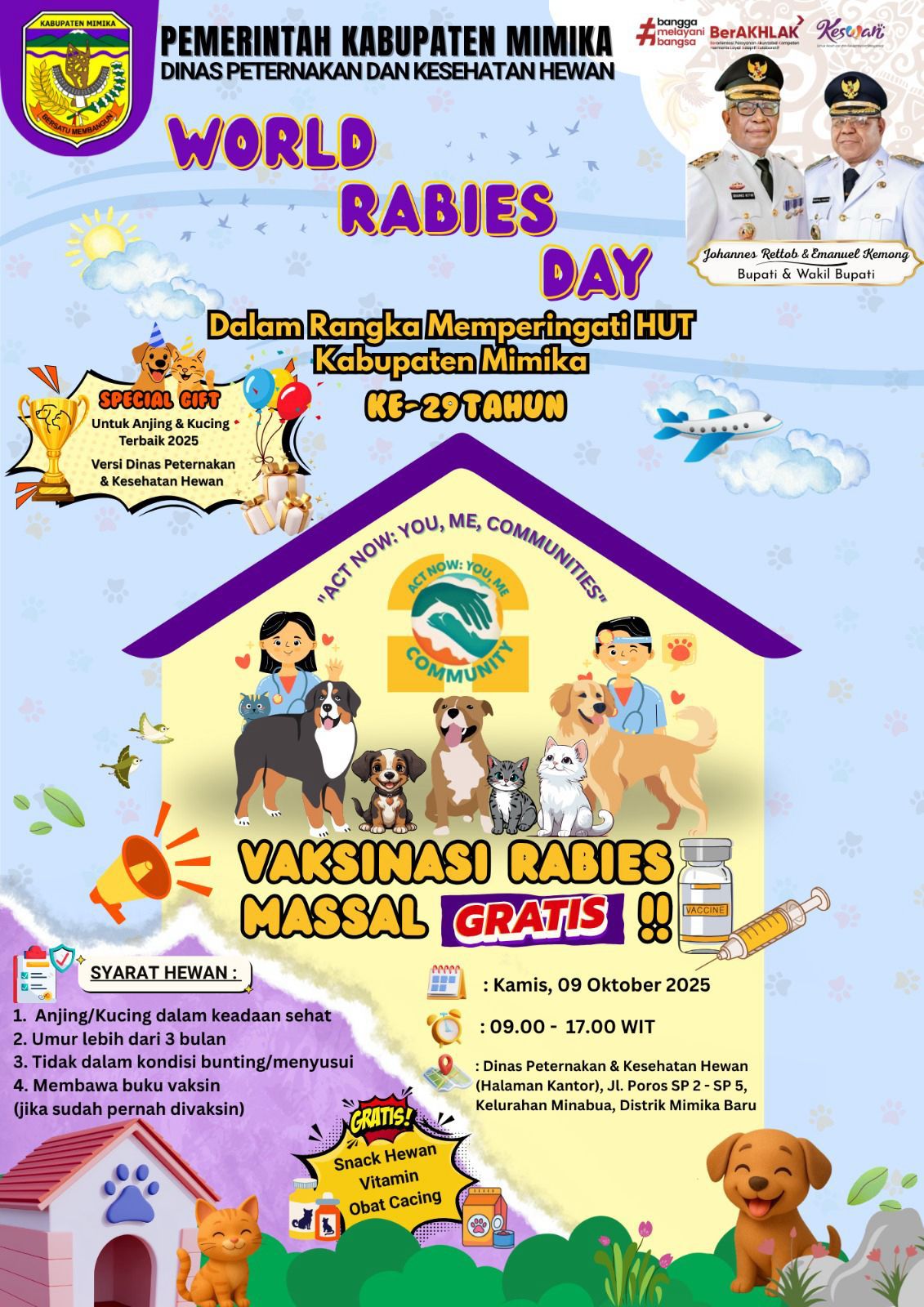Melalui tema “Act Now: You, Me, Communities”, Dinas Peternakan dan Kesehatan Hewan berharap kegiatan ini dapat memperkuat kolaborasi antara pemerintah dan masyarakat dalam mewujudkan Mimika bebas rabies.(ana)