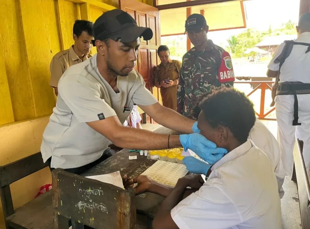 Pemeriksaan dilakukan oleh tenaga kesehatan dari Puskesmas, dengan dukungan lintas sektor, termasuk aparat TNI melalui Babinsa di setiap distrik.