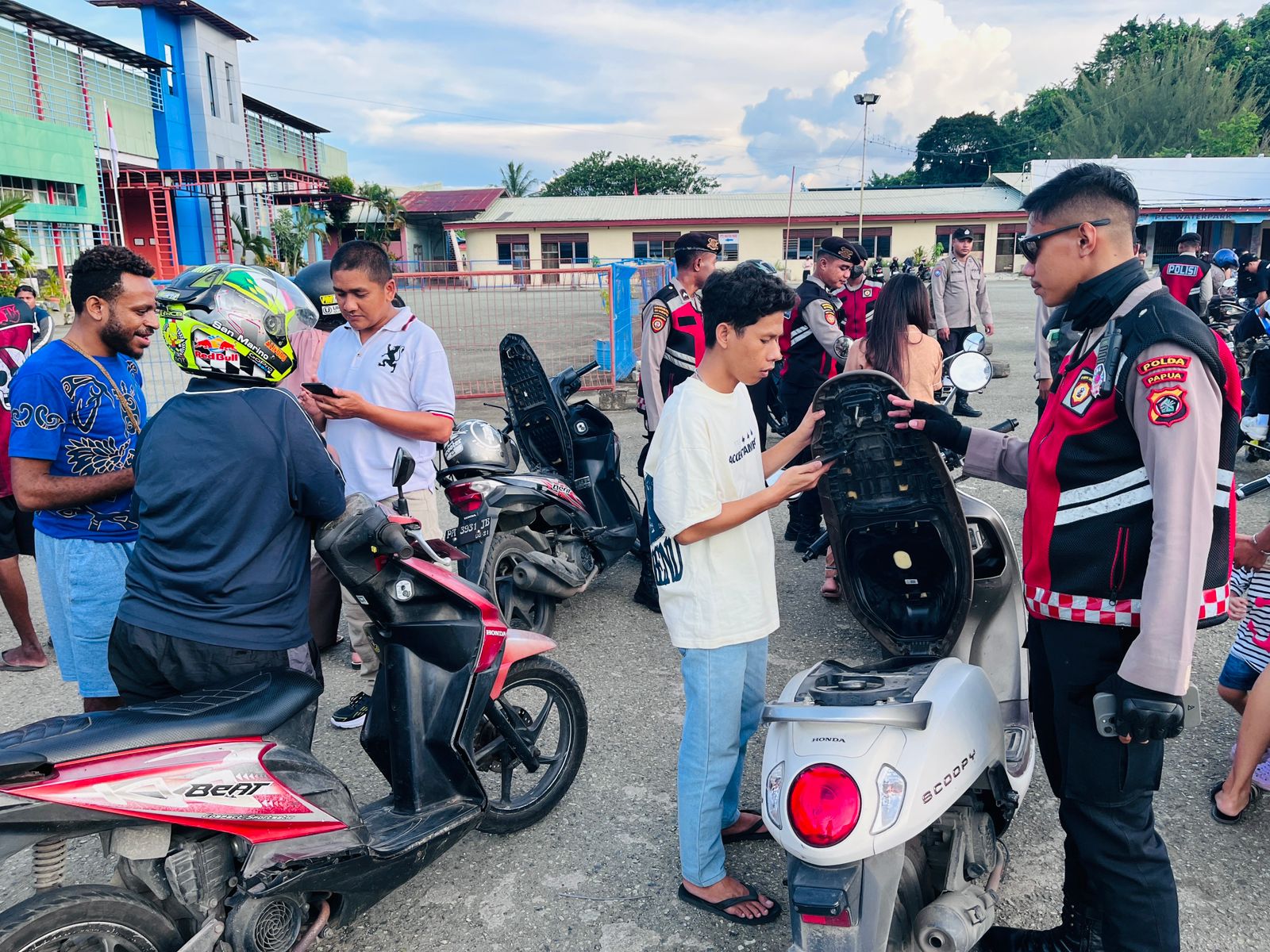 Dalam kegiatan tersebut, tim melakukan pemeriksaan terhadap pengendara dan kendaraan roda dua yang melintas di lokasi razia.