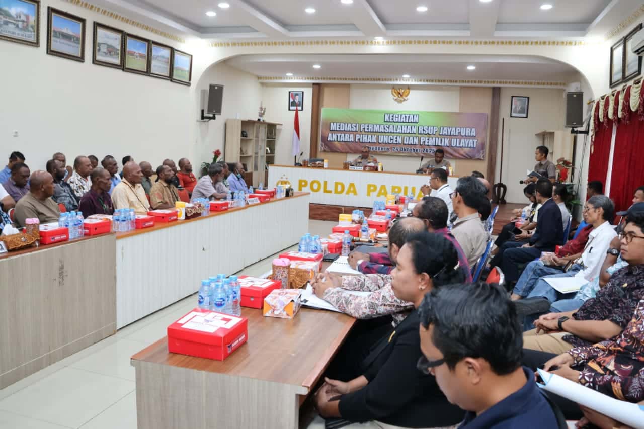 Jayapura, fajarpapua.com — Kepolisian Daerah (Polda) Papua memfasilitasi pertemuan mediasi antara pihak Universitas Cenderawasih (Uncen) dan perwakilan masyarakat adat terkait sengketa lahan pembangunan Rumah Sakit Umum Pusat (RSUP) Jayapura.