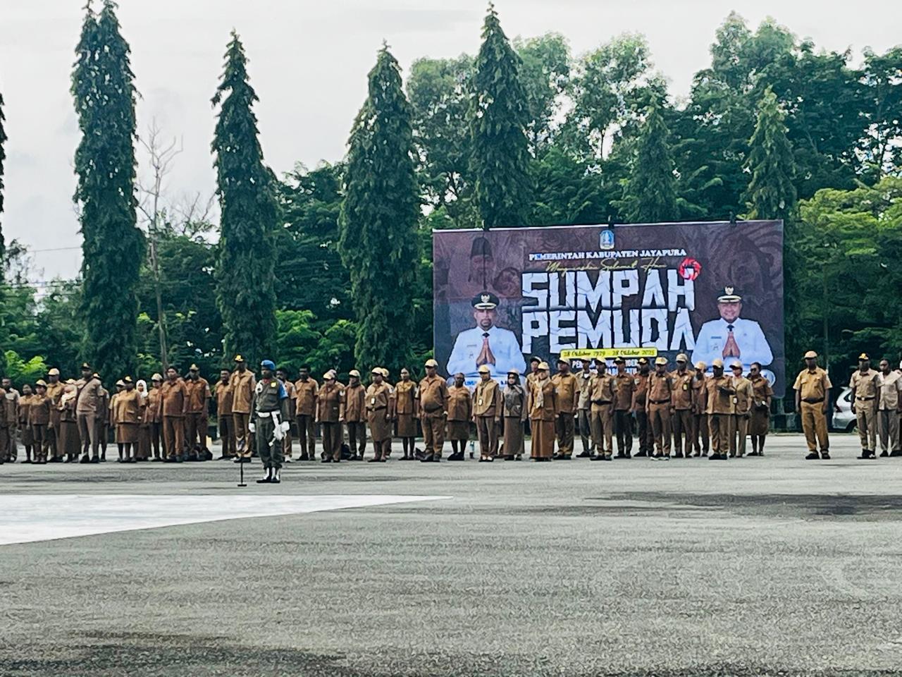 Bupati Jayapura, Yunus Wonda usai memimpin upacara mengatakan, semua Aparatur Sipil Negara (ASN) bersama seluruh elemen masyarakat harus tetap bersemangat bekerja dan melayani masyarakat.