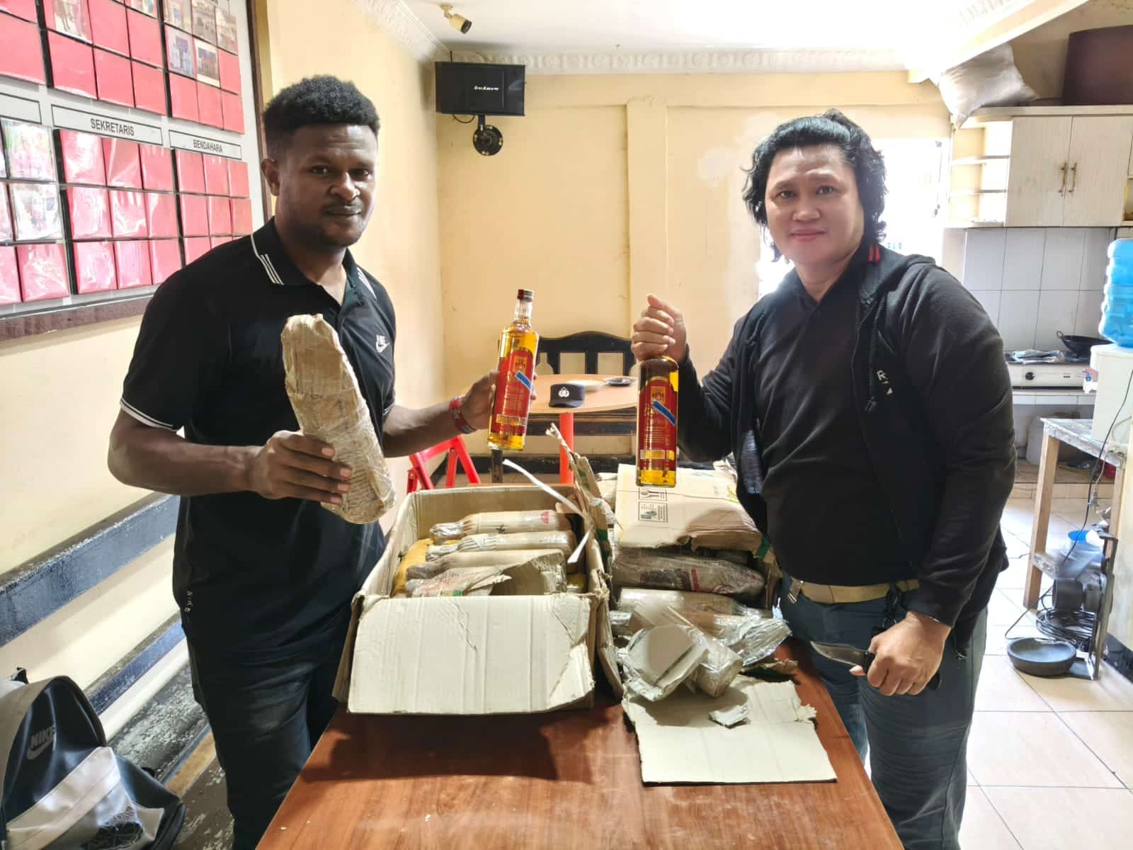 Kapolsek KPL Jayapura, Iptu H. Abdul Kadir, saat dikonfirmasi menjelaskan dari hasil pemeriksaan tersebut, petugas berhasil menemukan 31 botol miras tanpa izin edar yang dikemas dalam dua karton. Barang bukti itu terdiri atas 29 botol whisky merek Robinson (Wiro) dan 2 botol anggur merah merek Javan.