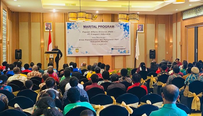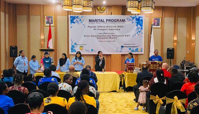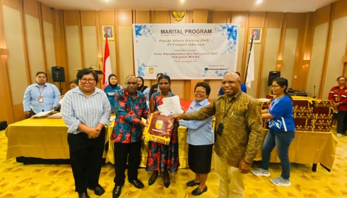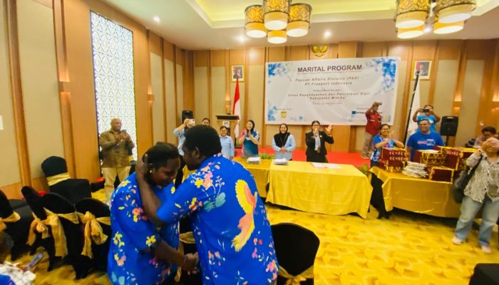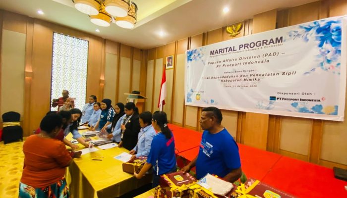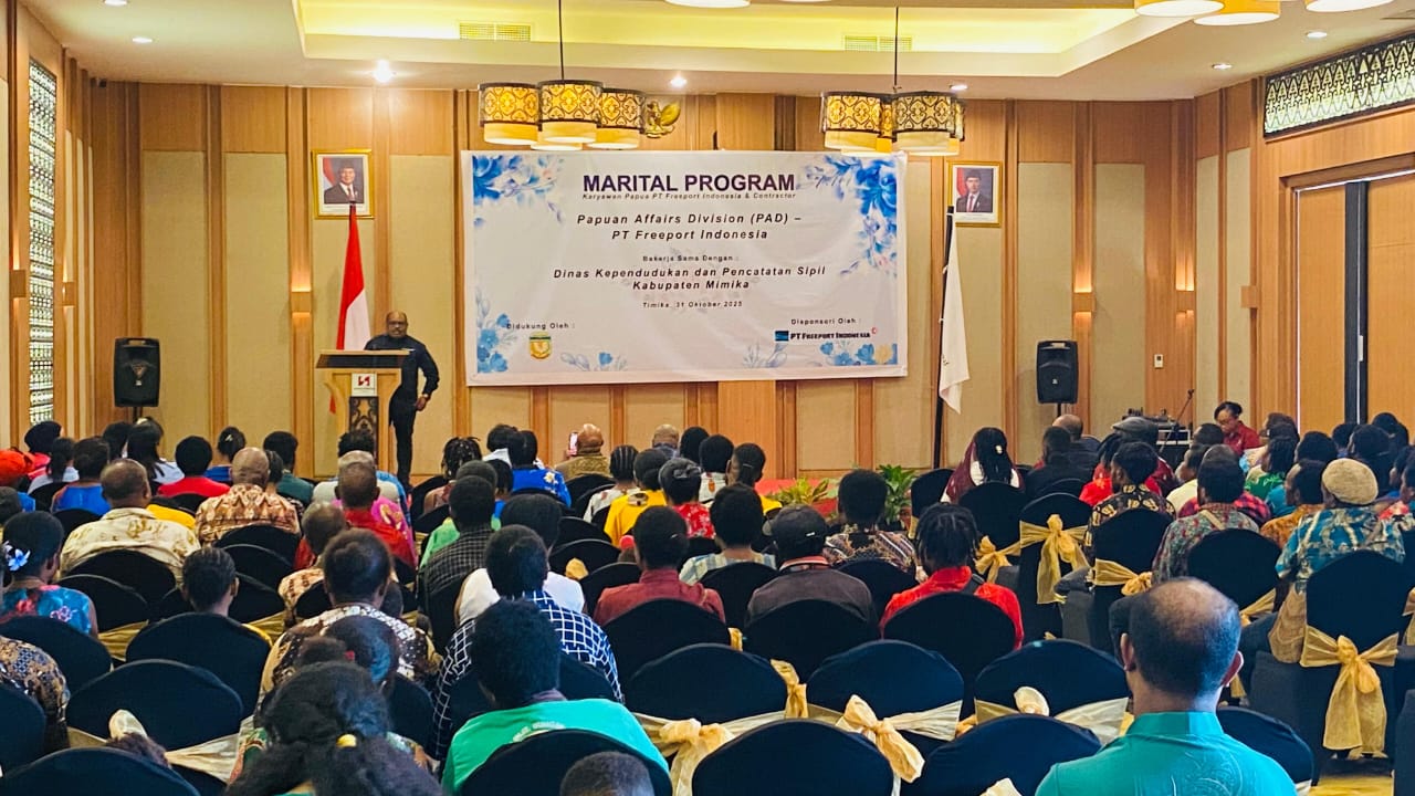 Sebanyak 25 Karyawan Orang Asli Papua (OAP) PT Freeport Indonesia jalani nikah masal catatan sipil yang digelar oleh PAD bekerjasama dengan Dinas Dukcapil Mimika di Swissbellinn Hotel Timika, Jumat (31/10).