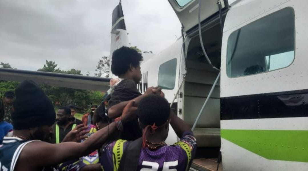 Evakuasi para korban dilakukan pada Senin (11/11) melalui Bandara Kenyam menggunakan pesawat Caravan milik maskapai penerbangan PT Smart Cakrawala Aviation.