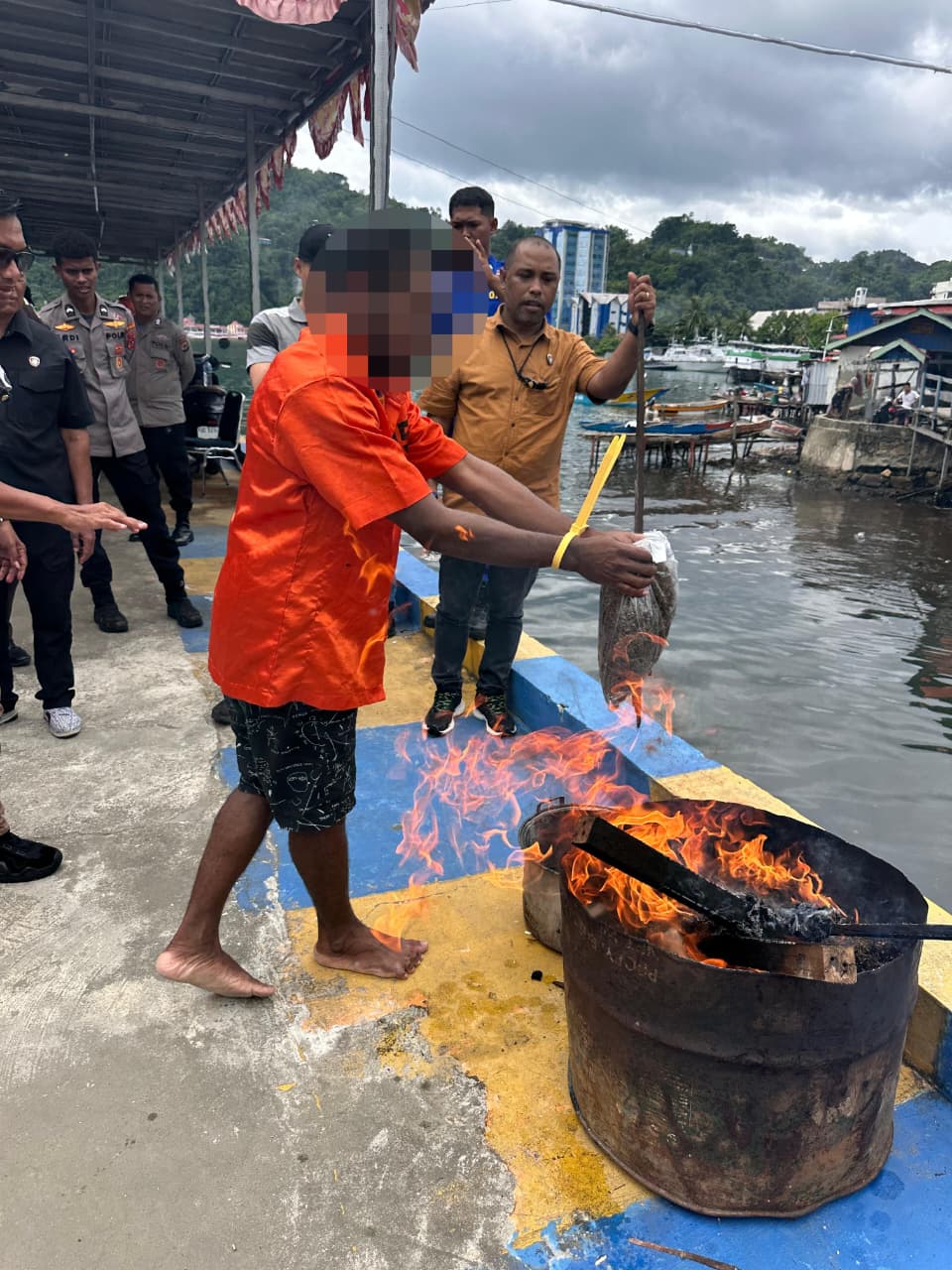 Proses pemusnahan dilakukan dengan cara dibakar, disaksikan Jaksa Penuntut Umum Yosef dan Achmad Kobarubun, serta penasihat hukum Chairul Fahru Siregar.