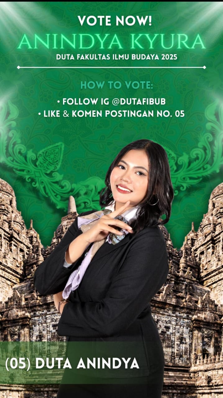 Dengan lolosnya ke babak grand final, Anindya Kyura kini menjadi salah satu perwakilan mahasiswa yang siap bersaing memperebutkan gelar Duta FIB UB 2025.