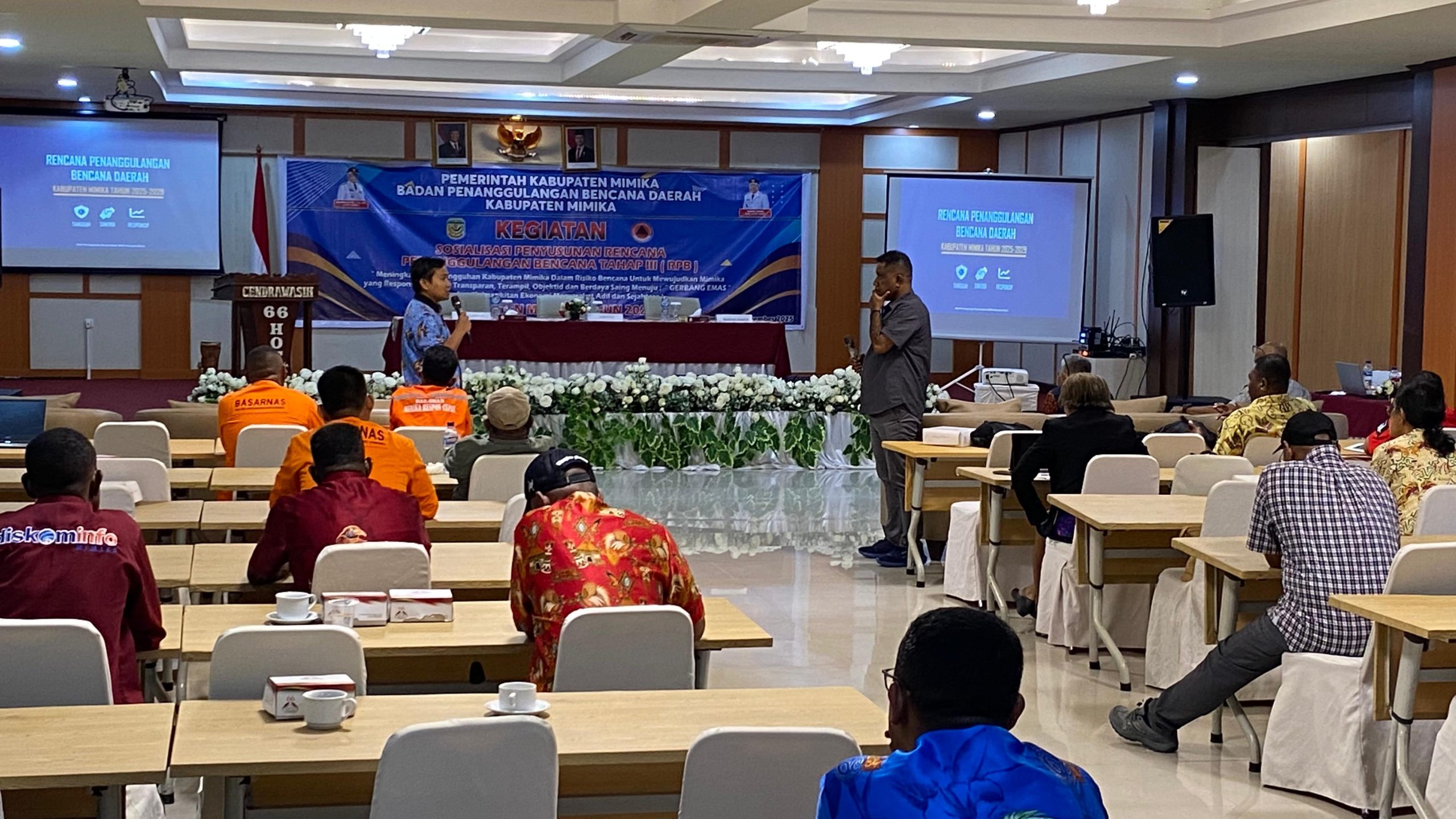 Timika, fajarpapua.com – Badan Penanggulangan Bencana Daerah (BPBD) Kabupaten Mimika menggelar sosialisasi penyusunan dokumen Rencana Penanggulangan Bencana (RPB) tahap III atau tahap akhir, Kamis (21/11), di Aula Cenderawasih 66 Hotel Timika.