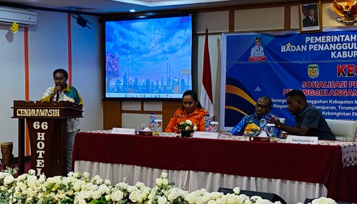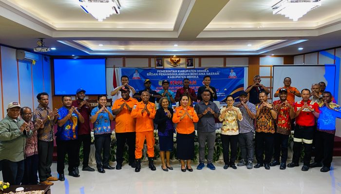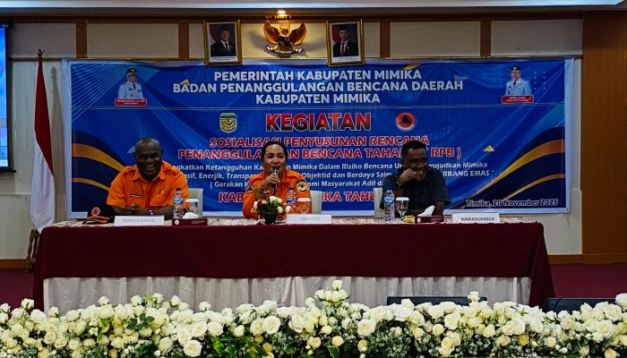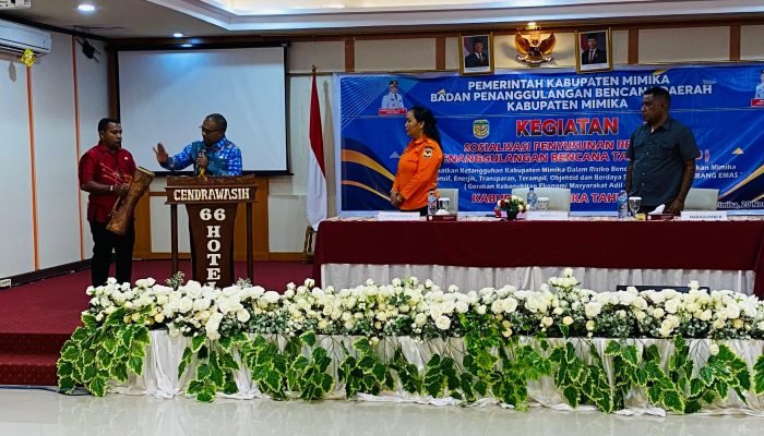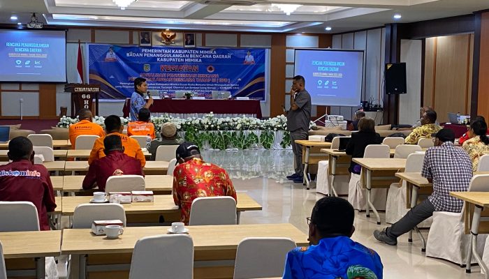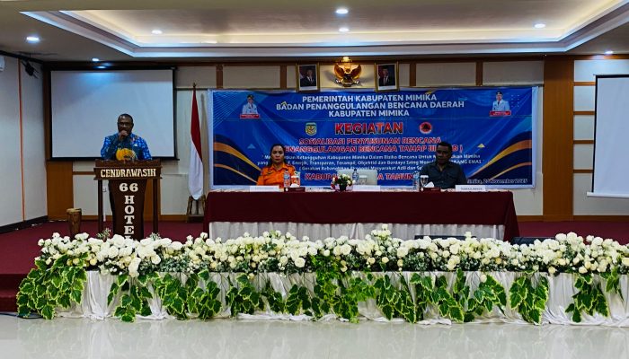 BPBD Mimika melaksanakan sosialisasi penyusunan dokumen Rencana Penanggulangan Bencana (RPB) tahap III atau akhir di Hotel Cendrawasih Timika, Kamis (20/11).