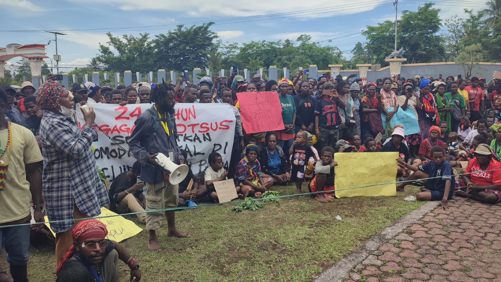 Timika, fajarpapua.com – Ratusan orang asli Papua (OAP) yang tergabung dalam Solidaritas Mahasiswa dan Rakyat Papua melakukan aksi damai di kantor DPRK Mimika, Jumat (21/11).