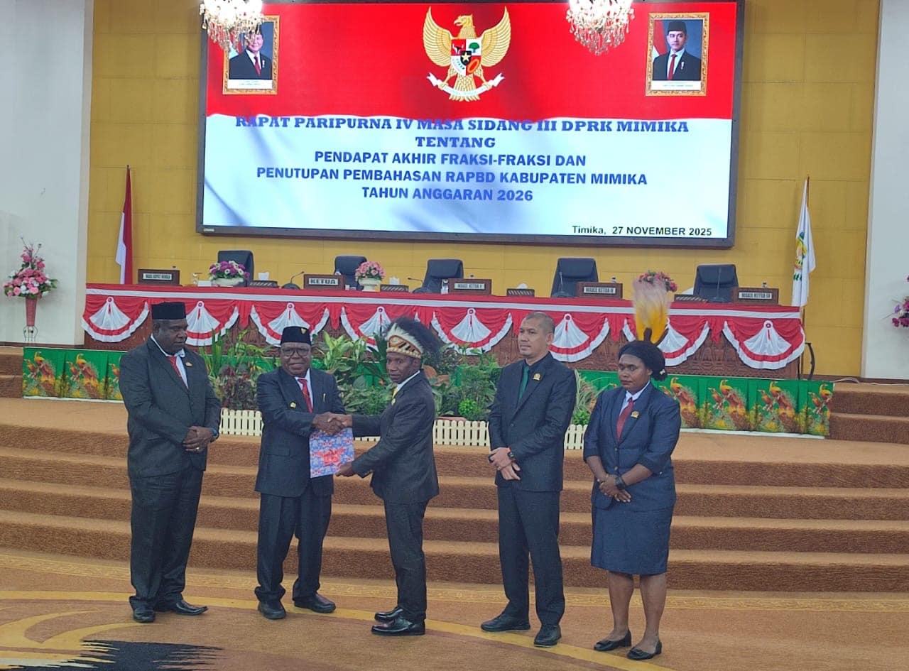 Ia mengungkapkan, pandangan fraksi yang disampaikan bukan formalitas, tapi cerminan kesepakatan politik yang matang antara legislatif dan eksekutif. Pandangan tersebut merangkum koreksi, penajaman program, dan prioritas pembangunan yang dianggap mendesak untuk kemajuan Kabupaten Mimika tahun 2026.