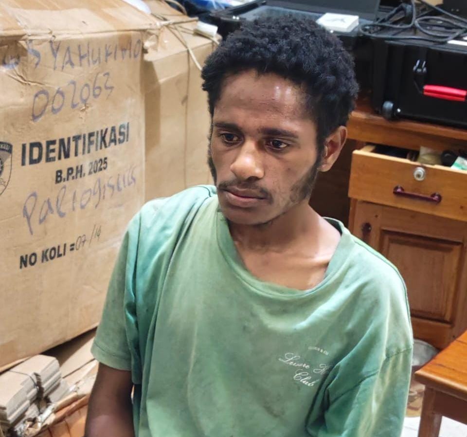 Timika, fajarpapua.com — Satgas Ops Damai Cartenz bersama Polres Yahukimo menangkap Iron Heluka, anggota Kelompok Kriminal Bersenjata (KKB) Kodap XVI Yahukimo Batalyon Sisibia, pada Jumat (28/11). Pelaku ditangkap saat melakukan pembakaran salah satu lapak gorengan di kawasan Ruko Blok C, Distrik Dekai, Kabupaten Yahukimo.