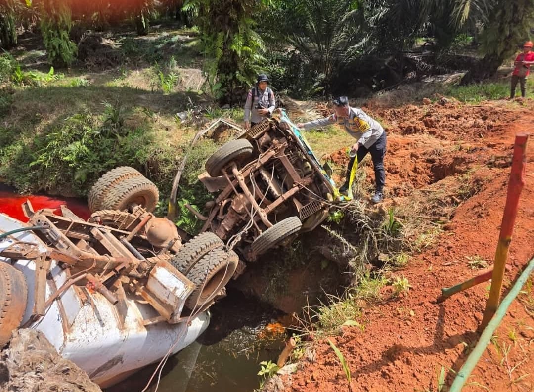 Saat melintasi jalur menanjak di area perkebunan perusahaan, kendaraan diduga kehilangan tenaga sehingga mundur tidak terkendali.