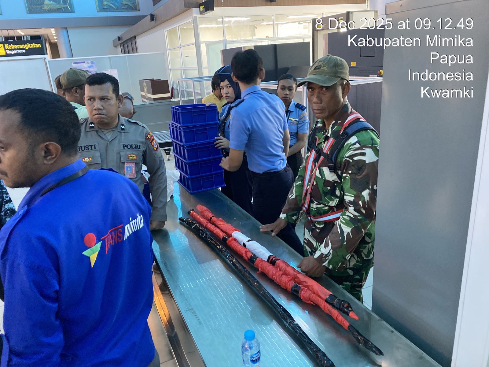Polres Mimika turut mengimbau masyarakat agar mematuhi seluruh aturan keamanan penerbangan dan tidak membawa barang berbahaya selama perjalanan udara. (ron)