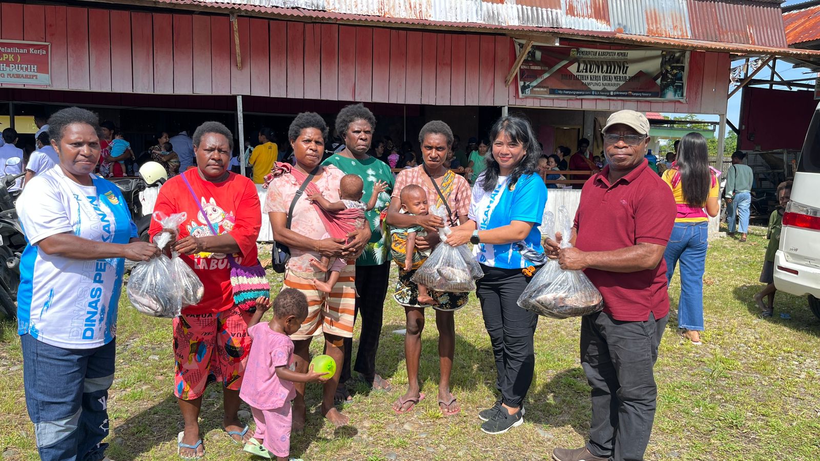 Salah satu langkah nyata diwujudkan melalui kegiatan penanganan dan pencegahan stunting dengan menyalurkan bantuan ikan konsumsi kepada bayi dan balita di tiga kampung prioritas, yakni Kampung Nawaripi, Utikini Baru, dan Iwaka.