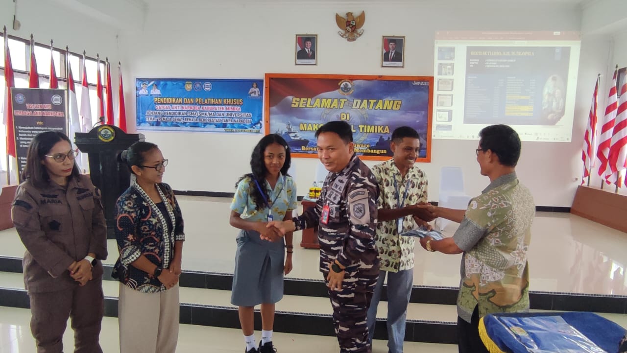 Selain pembekalan pencegahan penyalahgunaan narkoba, para peserta juga menerima materi wawasan kebangsaan dari Danlanal Timika Letkol Laut (P) Bekti Sutiarso serta konsekuensi hukum penyalahgunaan narkoba dari Kasi Pidum Kejari Mimika, Maria Petrona Dity Justitia Masella.
