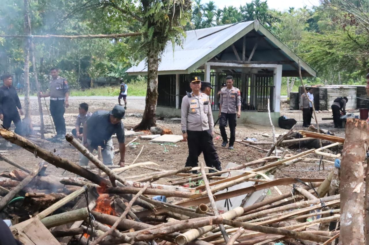 Timika, fajarpapua.com – Personel gabungan Polres Mimika bersama Polsek Kwamki Narama dan Sat Brimob Batalyon B Polda Papua Tengah kembali melaksanakan razia alat perang serta pembongkaran tenda perang pada hari kedua di Distrik Kwamki Narama, Kabupaten Mimika, Selasa (16/12).