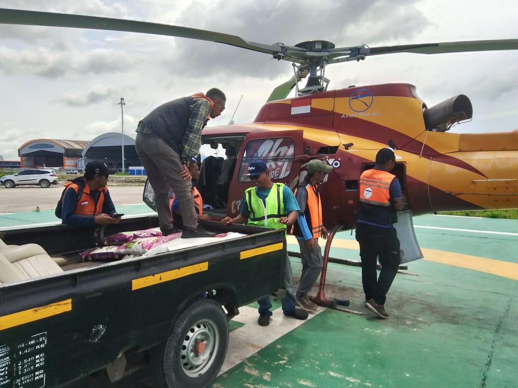 Semua bantuan ini telah diangkut menggunakan penerbangan dari hanggar Bandara Mozes Kilangin Timika ke Distrik Jila sejak Senin (22/12) hari ini.