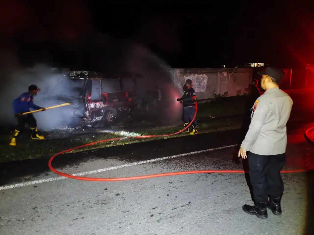 Jayapura, fajarpapua.com – Satu unit mobil angkutan umum jenis Mitsubishi Star Wagon bernomor polisi DS 7436 AD terbakar di Jalan Raya Netar, tepatnya di depan Pasar Ikan Kampung Nendali, Distrik Sentani Timur, Kabupaten Jayapura, pada Kamis (25/12) malam.