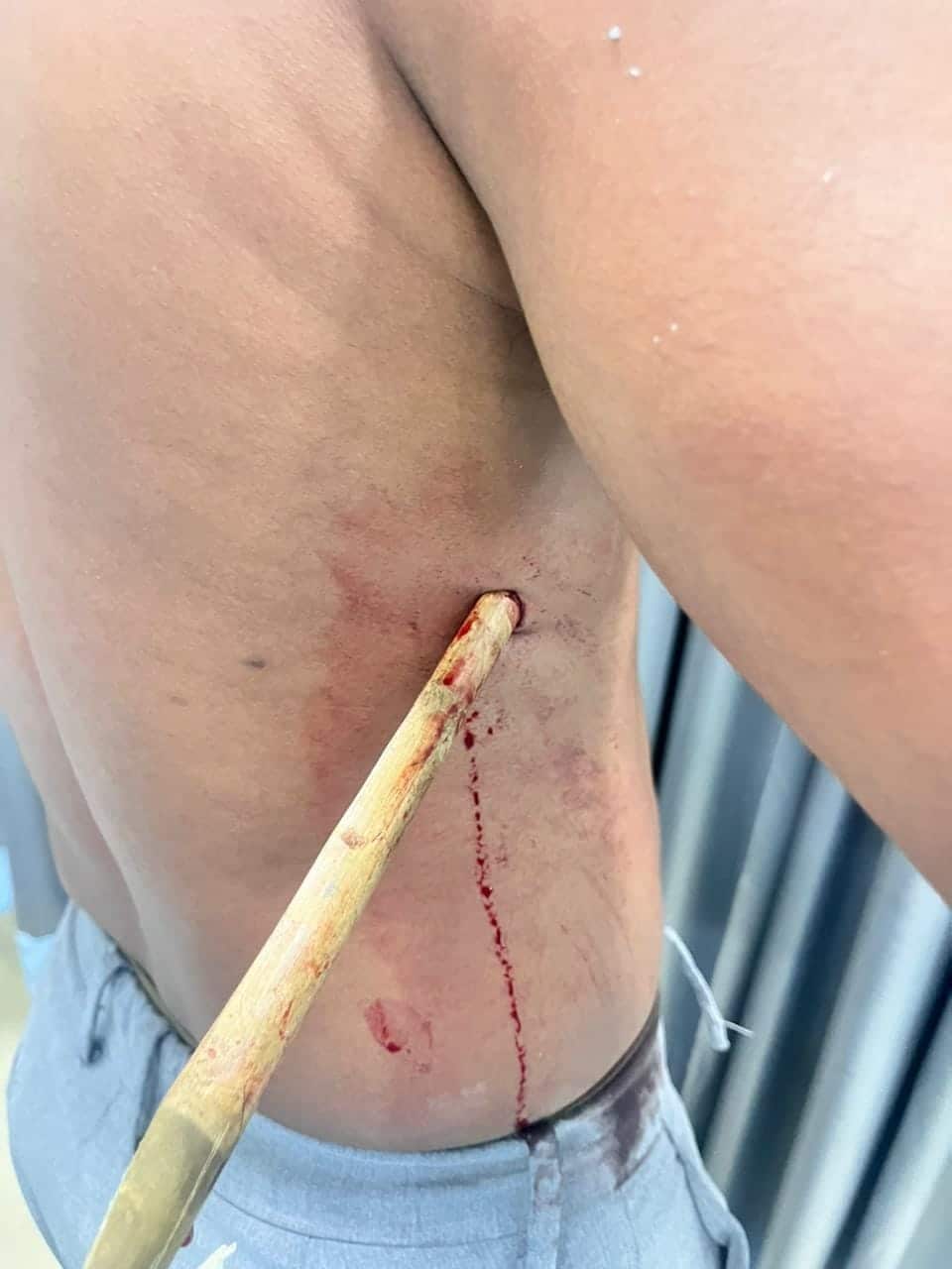 Korban mengalami luka akibat anak panah yang tertancap di bagian pinggang kanan.