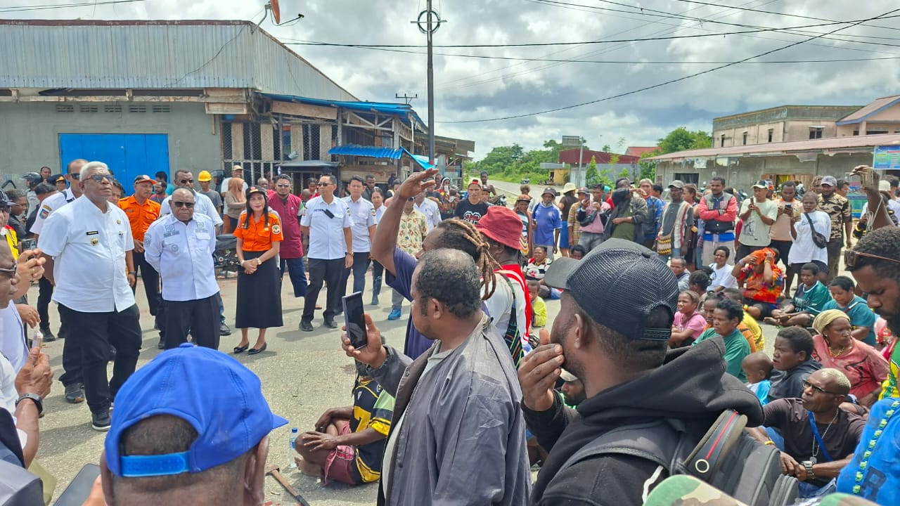 Timika, fajarpapua.com – Warga SP 5 Distrik Iwaka akhirnya membuka palang jalan setelah ditemui langsung Bupati Mimika Johannes Rettob dan Wakil Bupati Mimika Emanuel Kemong dalam aksi protes akibat banjir yang terus berulang setiap musim hujan, Kamis (7/1/2026).
