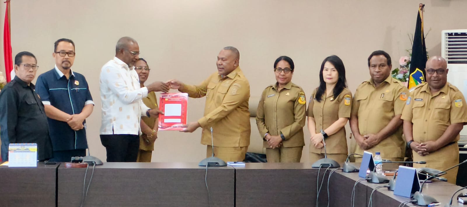 Penyerahan dokumen Raperdasi dilakukan oleh Wakil Gubernur Papua, Aryoko Rumaropen, kepada Ketua Badan Pembentukan Peraturan Daerah (Bapemperda) DPR Papua, Adam Arisoy, didampingi Ketua Komisi I DPR Papua Tan Wie Long, Wakil Ketua Komisi V DPR Papua Jayakusuma, serta Sekretaris DPR Papua Juliana Waromi, di Kota Jayapura, Selasa (6/1).