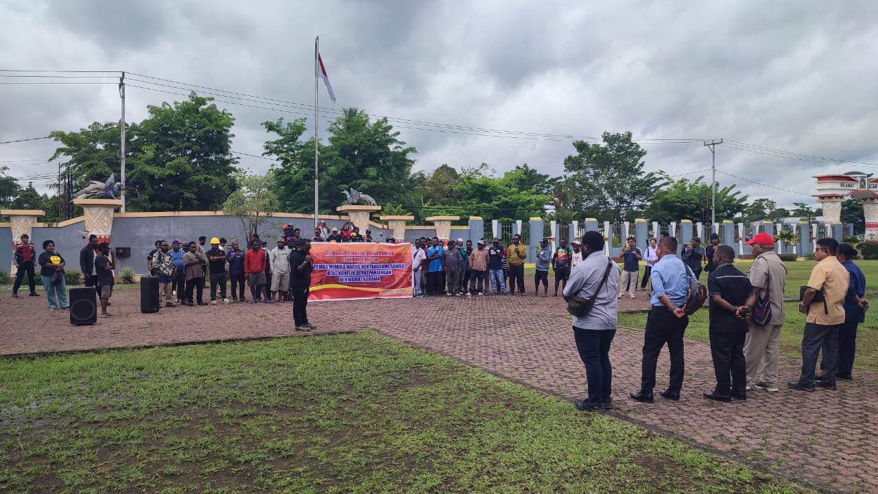 Koordinator Lapangan (Korlap) aksi, Yoki Sodegau, dalam orasinya menegaskan konflik di Distrik Kwamki Narama harus dihentikan karena telah membawa dampak buruk bagi masyarakat.