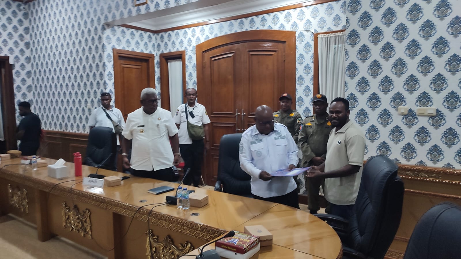 Dalam pertemuan tersebut, Bupati dan Wakil Bupati Mimika menerima dokumen aspirasi yang diserahkan oleh penanggung jawab aksi, Yance Sani, sebagai bentuk kepedulian masyarakat terhadap konflik berkepanjangan yang terjadi di Distrik Kwamki Narama.