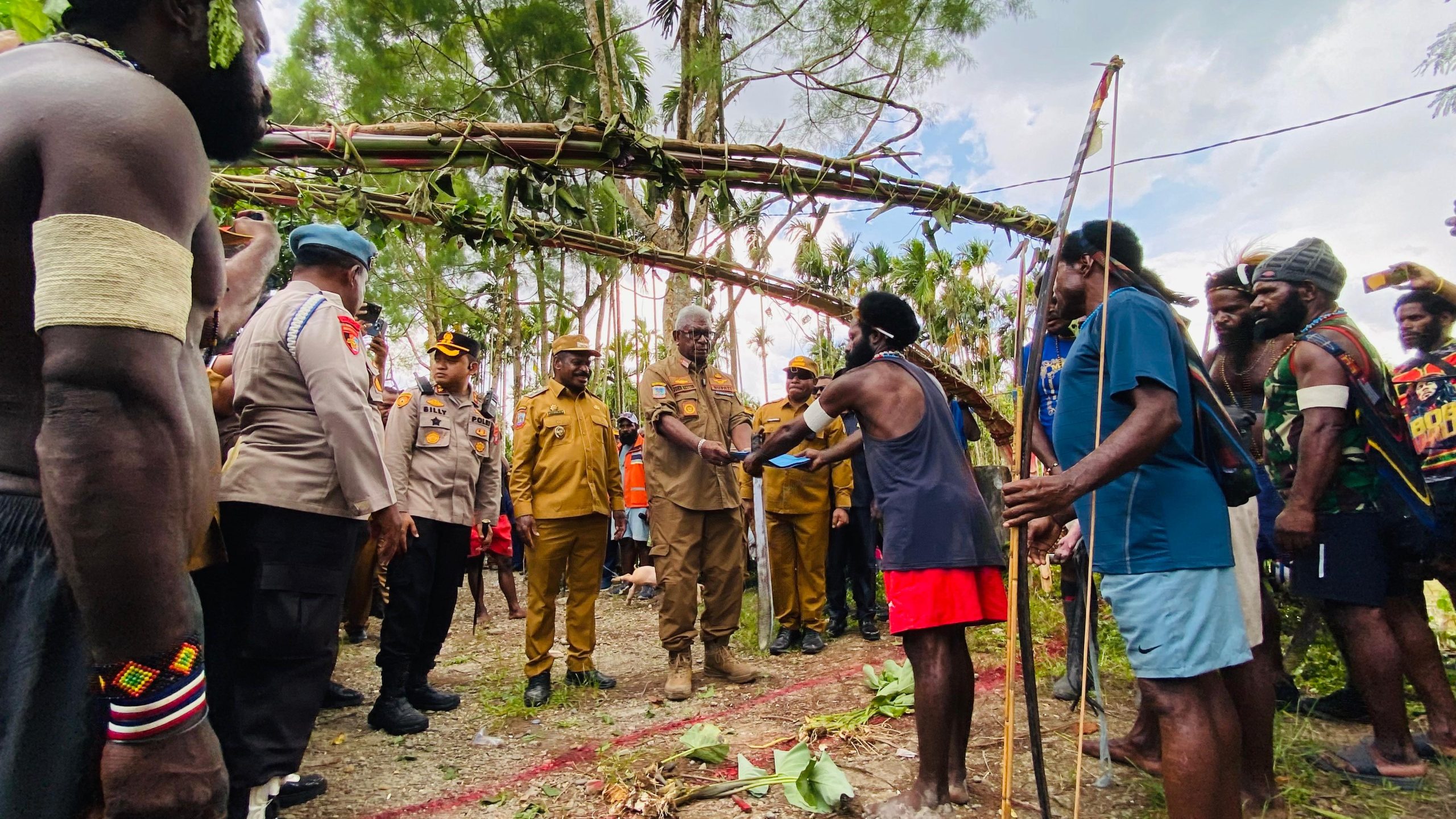 Perdamaian dilakukan ditengah-tengah perbatasan kedua belah pihak di Kampung Amole melalui prosesi adat belah kayu dan patah panah, Senin (12/1). Kegiatan ini dihadiri Bupati dan Wakil Bupati Mimika, Wakil Bupati dan Sekda Puncak, Forkopimda Mimika, serta aparat TNI dan Polri.