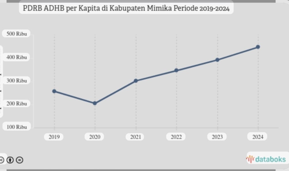 Menurut data resmi yang dirilis Databoks – Katadata yang diperoleh fajarpapua.com, Kamis (15/1) mencatat Produk Domestik Regional Bruto atas Dasar Harga Berlaku (PDRB ADHB) per kapita Mimika pada tahun 2024 tercatat sebesar Rp 446,33 juta per kapita per tahun.