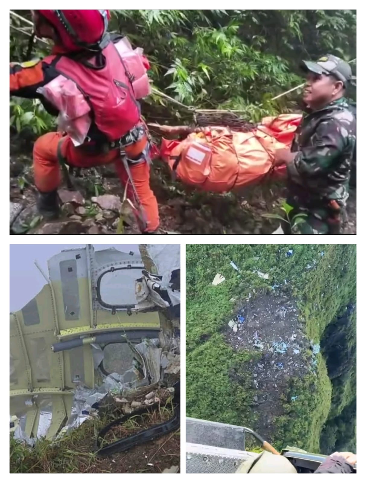 Korban ditemukan di dinding tebing berbatu dengan kemiringan hampir tegak lurus, menunjukkan bahwa sebagian badan pesawat berada di area tebing curam.