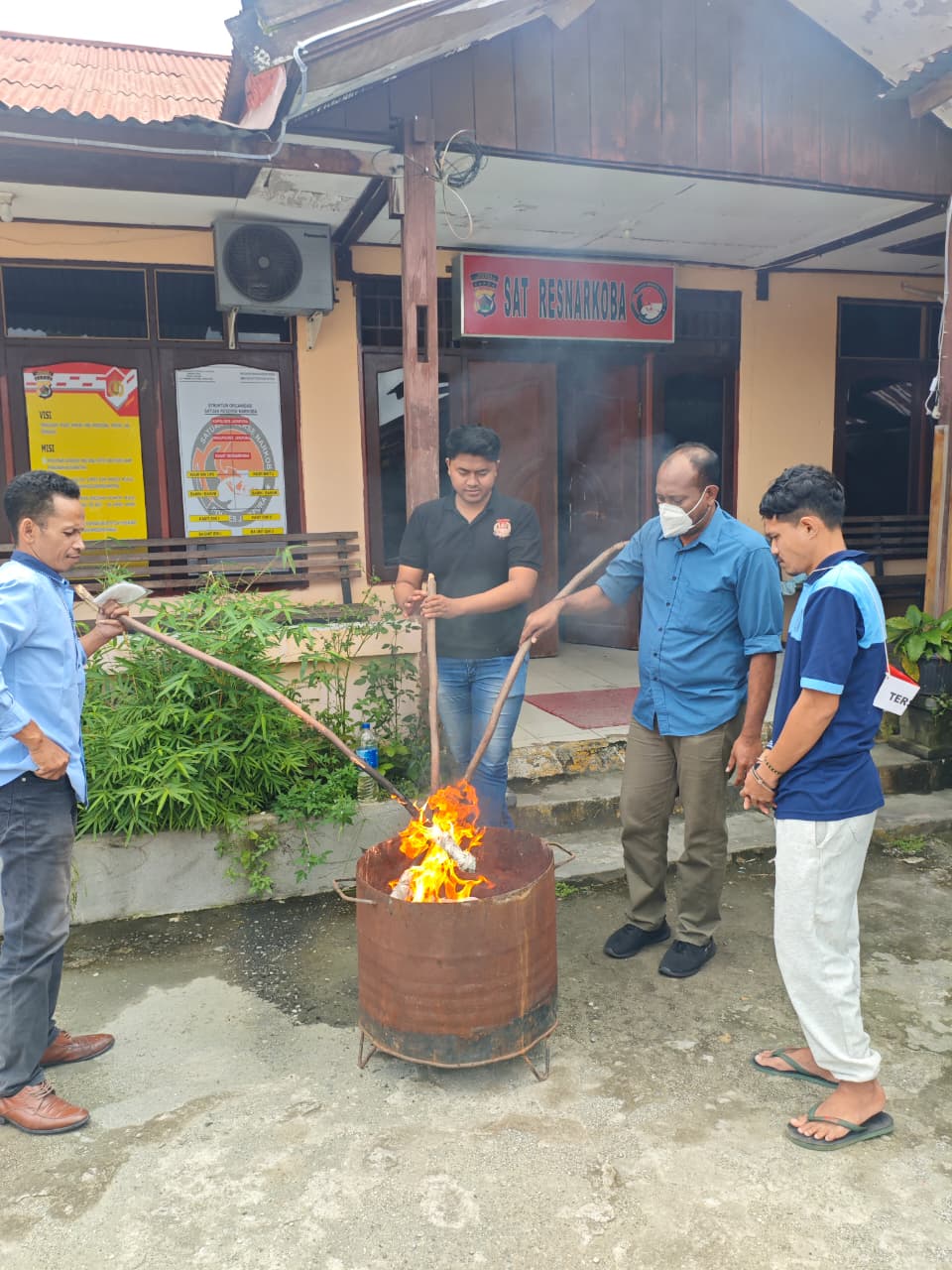 Ia menambahkan, pemusnahan barang bukti dilakukan dengan cara dibakar di dalam drum tempat sampah, disaksikan oleh seluruh pihak terkait guna menjamin transparansi dan keabsahan proses hukum.