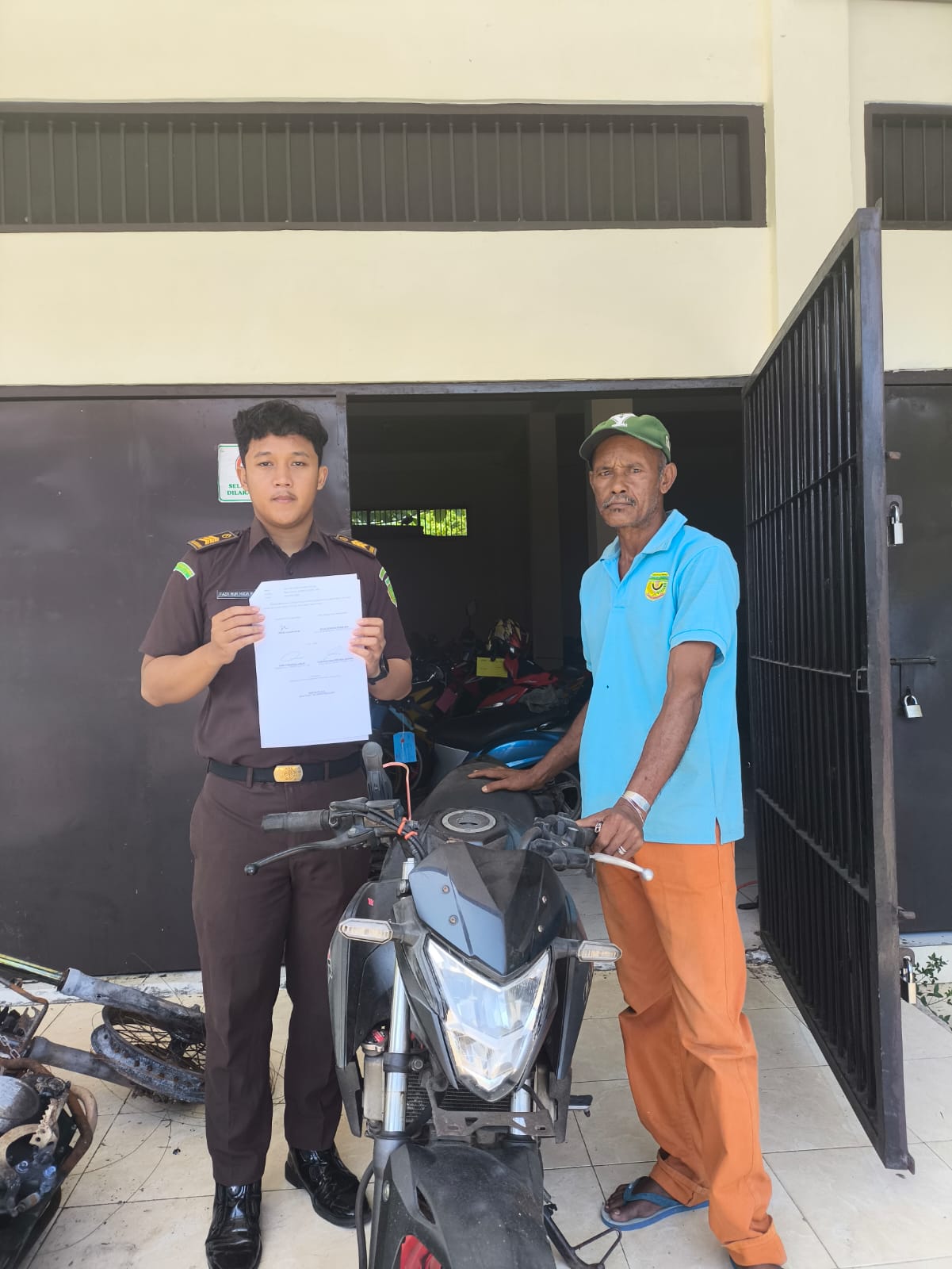 Pengembalian barang bukti berupa satu unit sepeda motor Honda CB150R warna hitam-merah dilakukan di Kantor Kejari Mimika, Kamis (22/1).