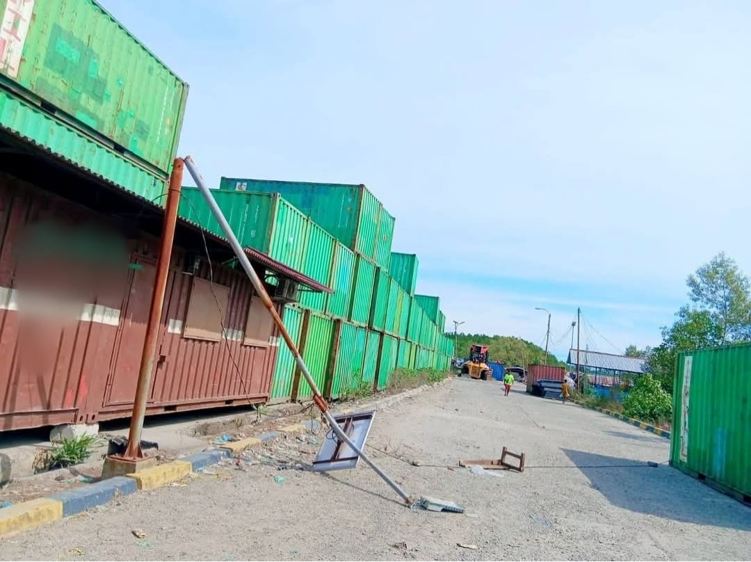 Akibatnya, sejumlah tiang listrik dan tiang lampu jalan patah dan roboh ke badan jalan, sehingga mengganggu aktivitas di sekitar pelabuhan.
