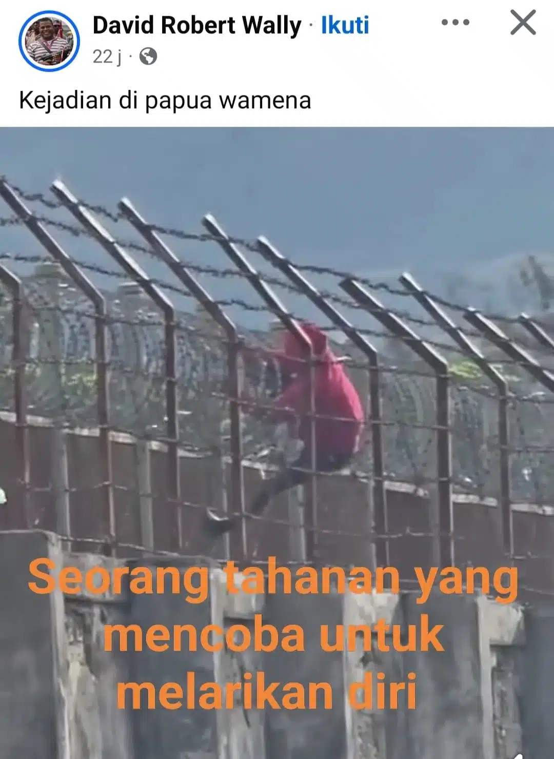“Benar ada upaya pelarian dari narapidana atau tahanan di Lapas Kelas II B Wamena. Untuk kronologi detailnya belum dapat kami sampaikan,” ujarnya.