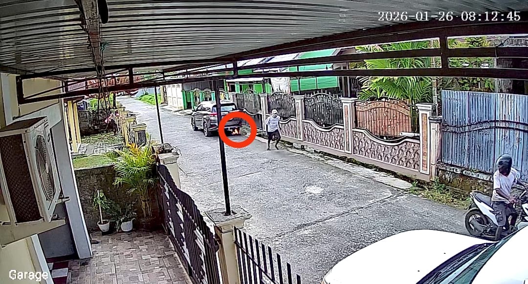 Dalam rekaman terlihat dua orang pemuda berboncengan menggunakan kendaraan roda dua. Tidak lama setelah melintasi mobil yang diduga menjadi sasaran, keduanya berhenti tidak jauh dari lokasi.